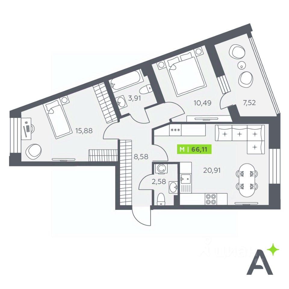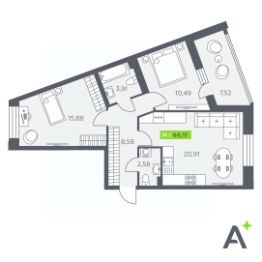 Общая площадь66,11 м²