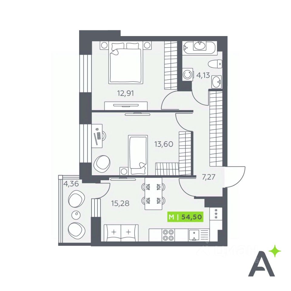 Общая площадь54,5 м²