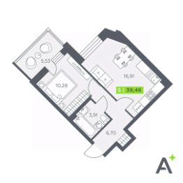 Общая площадь39,46 м²