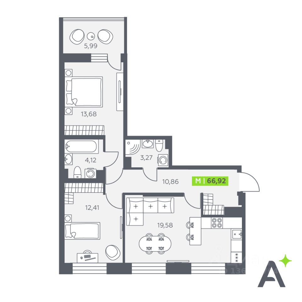 66,92 м²