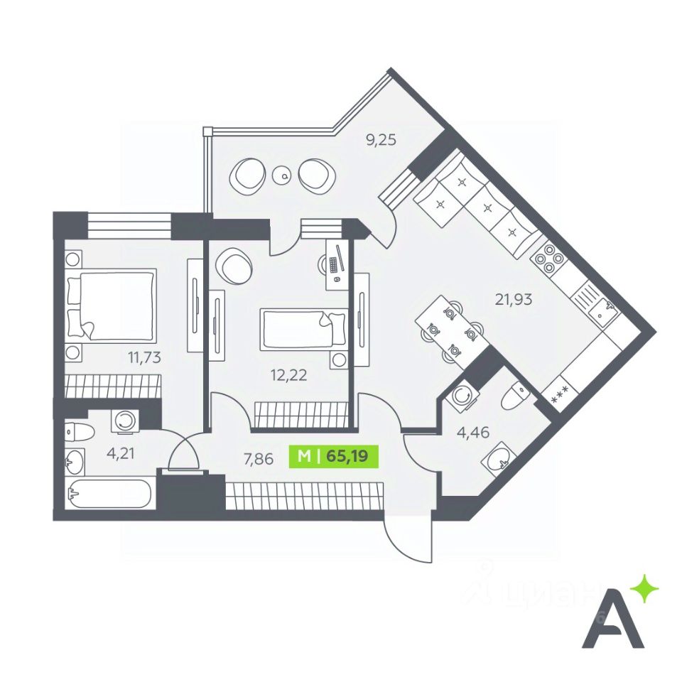 Общая площадь65,19 м²