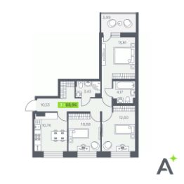 68,96 м²
