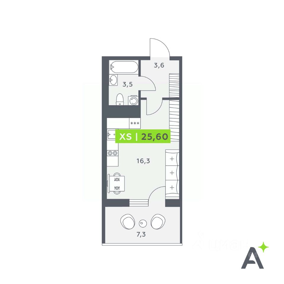 Общая площадь25,6 м²