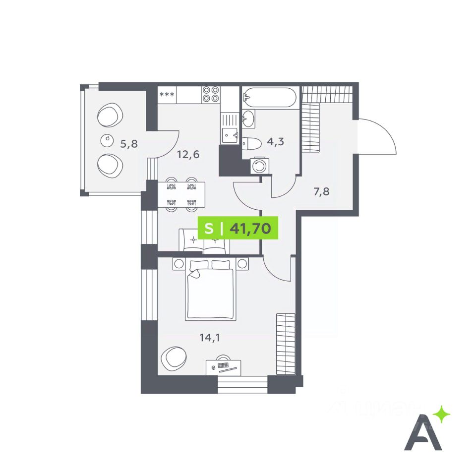 Общая площадь41,7 м²
