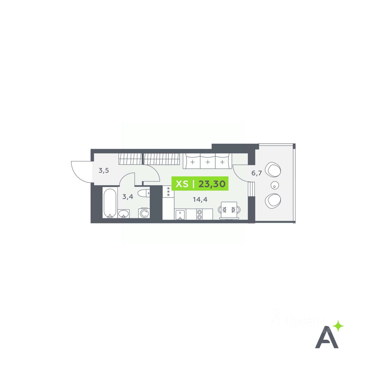 Общая площадь23,3 м²