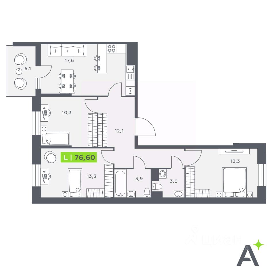 Light-in - в квартирах устанавливаются широкоформатные окна, увеличены на 30%. Высота подоконников на уровне 60 см от пола.