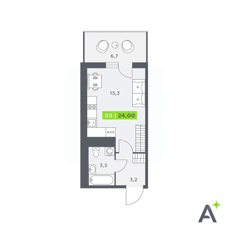 Общая площадь24 м²