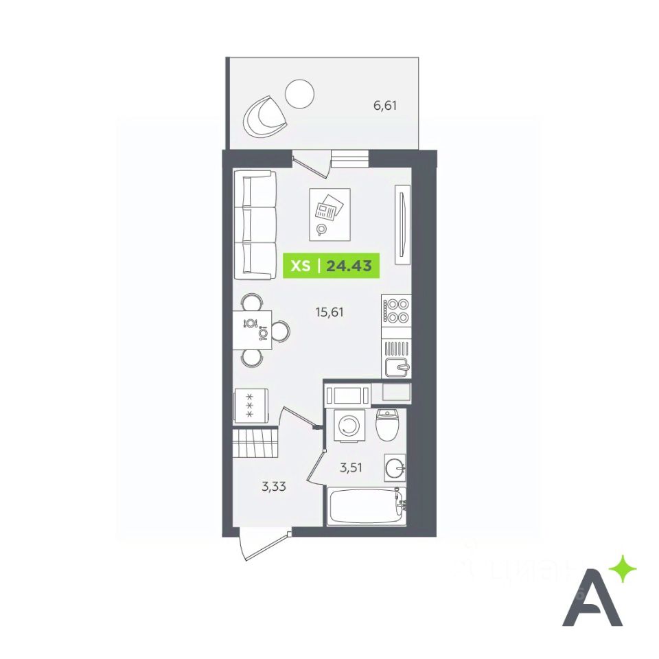 Общая площадь24,43 м²