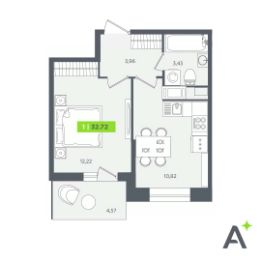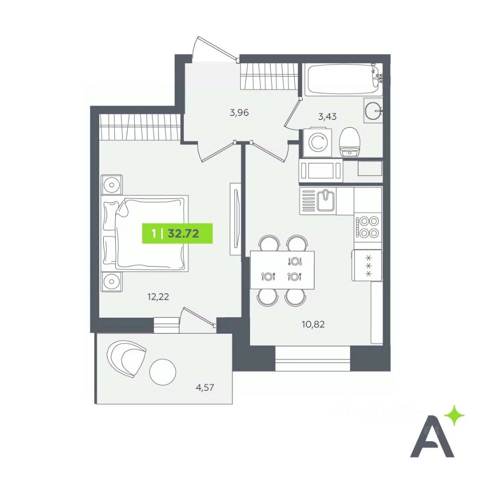 Общая площадь32,72 м²
