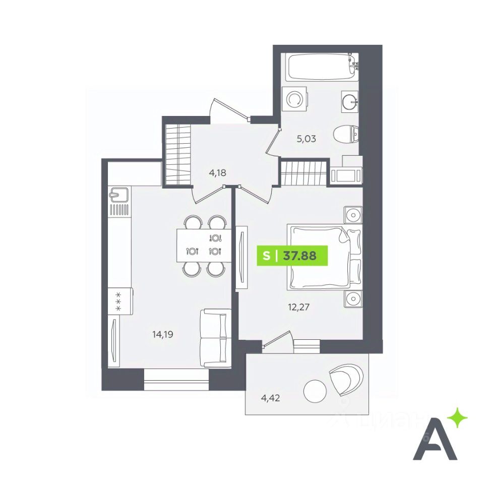Общая площадь37,88 м²