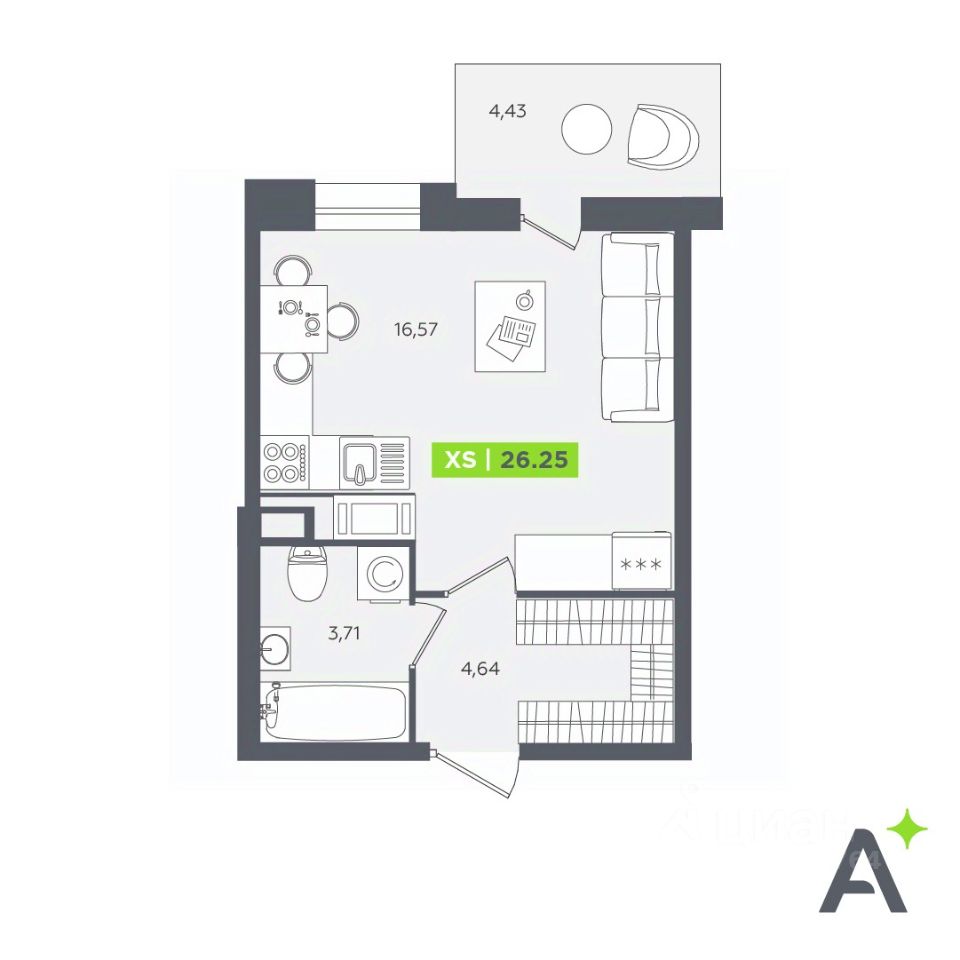 Общая площадь26,25 м²
