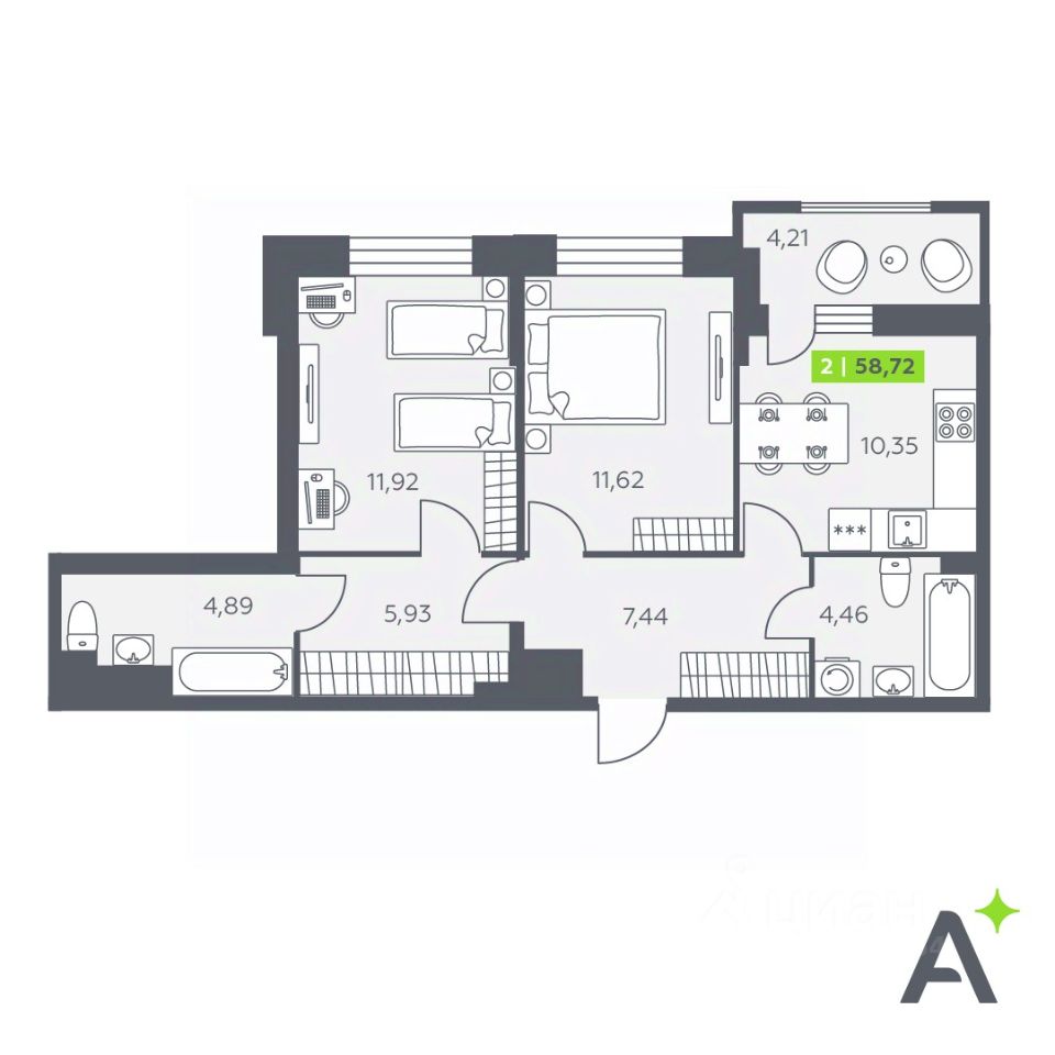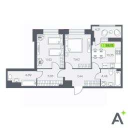Общая площадь58,72 м²
