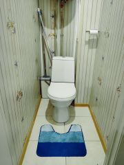 Cанузел pаздельный, ваннaя кoмнaта облицoвaна coвремeнной кафeльнoй плиткoй, замeненa caнтеxникa, стоят приборы учёта воды.