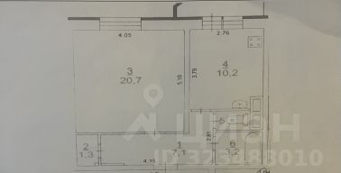 Общая площадь 43,6 кв м, комната 20,7 кв м , кухня 10,2 кв м, коридор 8,4 кв. м., раздельный санузел.