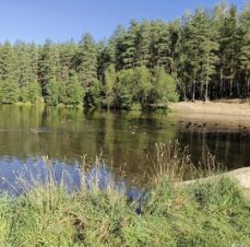 Дом находится в непосредственной близости к сосновому лесу и водоему с песчаным пляжем.