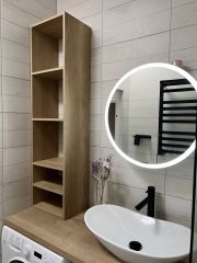 - вместительный кухонный гарнитур со встраиваемой техникой;