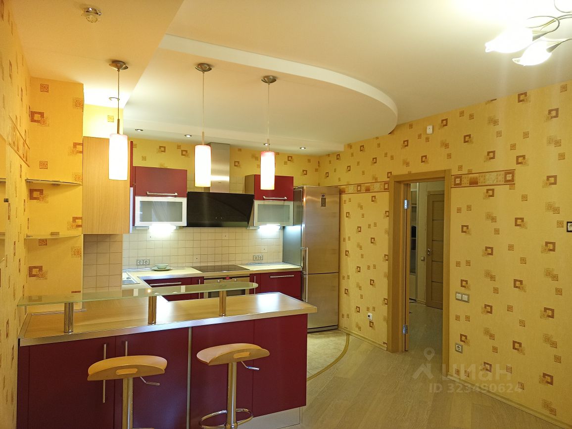На кухне: встроенная мебель, холодильник, вытяжка, плита с духовым шкафом, посудомоечная машина, установлен обогрев пола. Из кухни есть выход на лоджию. Лоджия утеплена, стоят стеклопакеты, есть свет.
