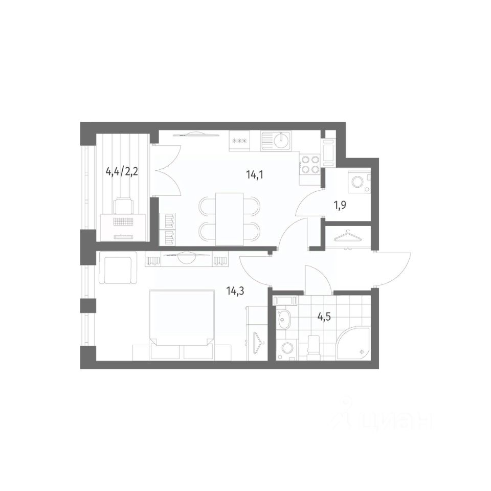 в NEWПИТЕР от компании ГК "ТРЕСТ". Площадь кухни 14.1 м². Жилой квартал расположен в пос. Новоселье. Прописка Ленинградская область.