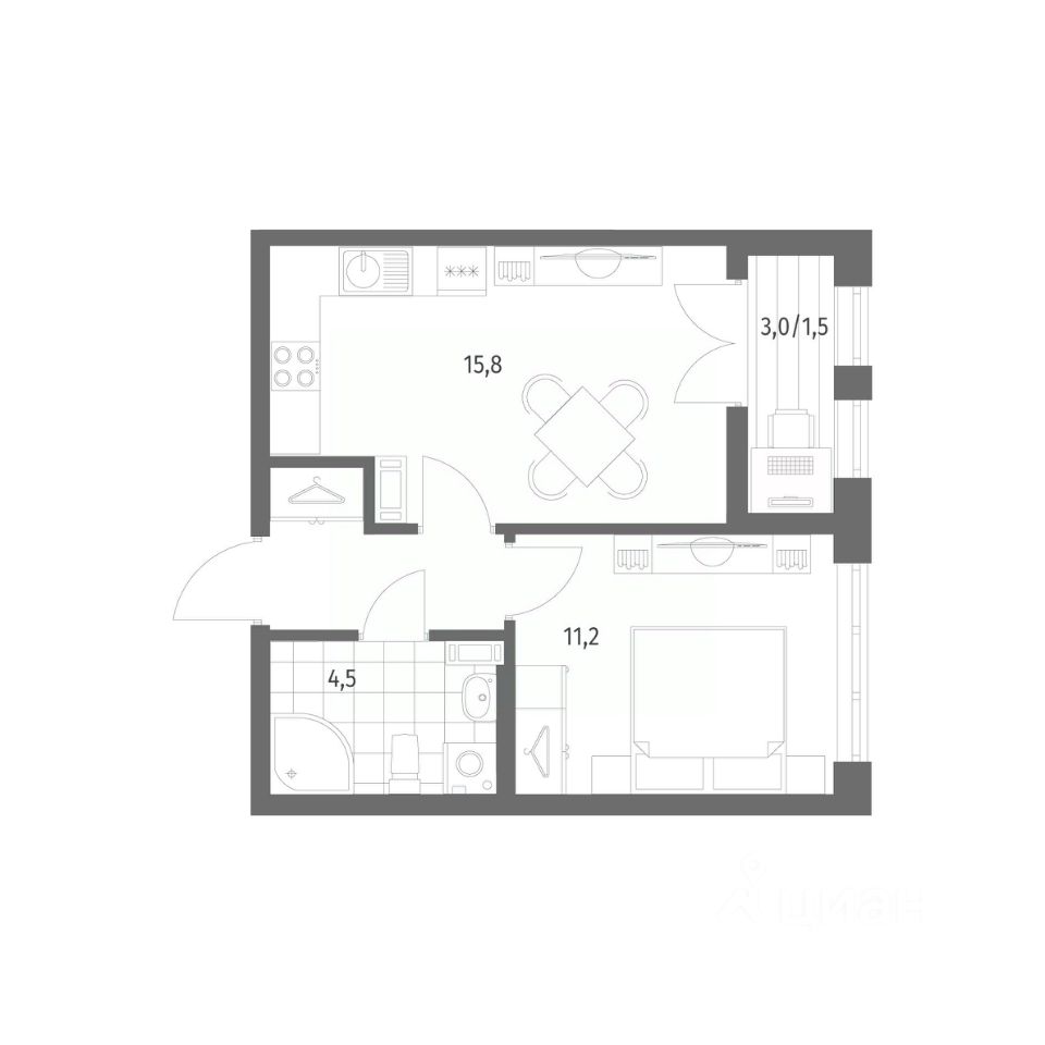 в NEWПИТЕР от компании ГК "ТРЕСТ". Площадь кухни 15.8 м². Жилой квартал расположен в пос. Новоселье. Прописка Ленинградская область.