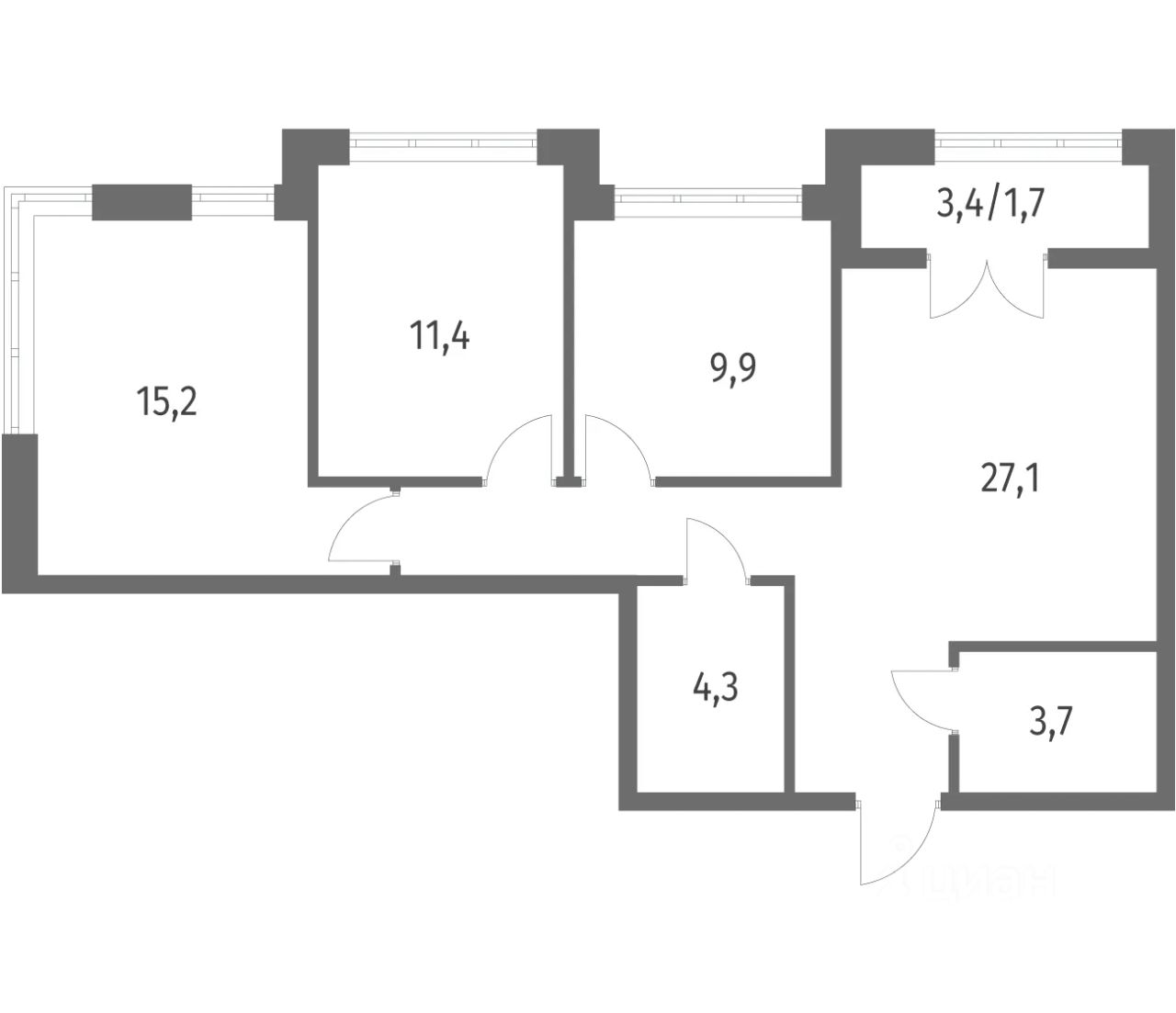 Продается квартира площадью 73.3 м²