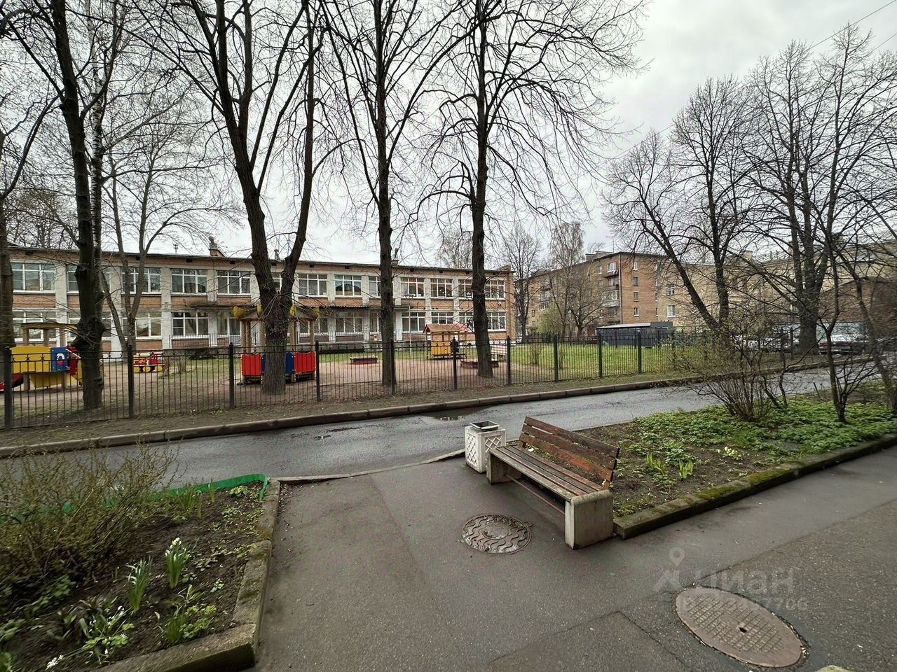 Окна квартиры выходят во двор, где открывается вид на детский садик, что идеально подходит для семей с детьми. В шаговой доступности находятся поликлиника и гинекологическое отделение, а также Никольская церковь. Общественный транспорт всего в 2-х минутах от дома обеспечит вам легкий доступ к другим районам города.