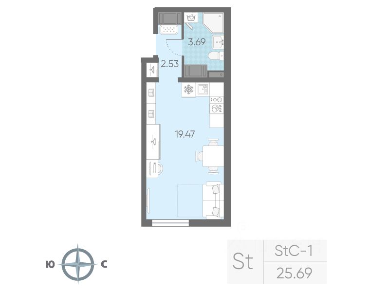 Продается студия в ЖК "Морская миля" на 3 этаже. Общая площадь составляет 25.69 кв. м. Квартира с чистовой отделкой. Жилой комплекс "Морская миля" располагается по адресу Санкт-Петербург, Красносельский.