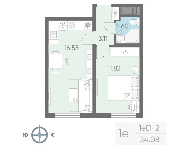 Продается 1-комнатная квартира в ЖК "Морская миля" на 3 этаже. Общая площадь составляет 34.08 кв. м. Квартира с чистовой отделкой. Жилой комплекс "Морская миля" располагается по адресу Санкт-Петербург, Красносельский.