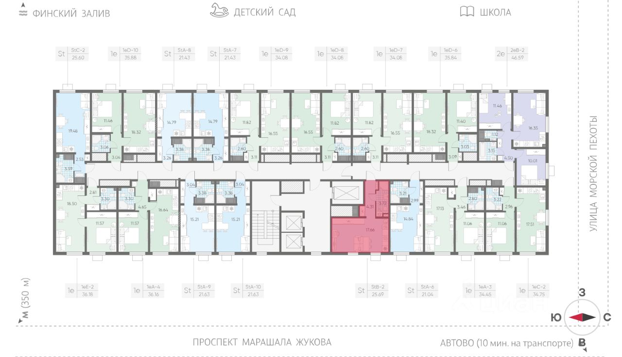 Продается студия в ЖК "Морская миля" на 3 этаже. Общая площадь составляет 25.69 кв. м. Квартира с чистовой отделкой. Жилой комплекс "Морская миля" располагается по адресу Санкт-Петербург, Красносельский.