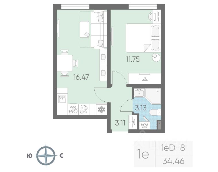 Продается 1-комнатная квартира в ЖК "Морская миля" на 2 этаже. Общая площадь составляет 34.46 кв. м. Квартира с чистовой отделкой. Жилой комплекс "Морская миля" располагается по адресу Санкт-Петербург, Красносельский.