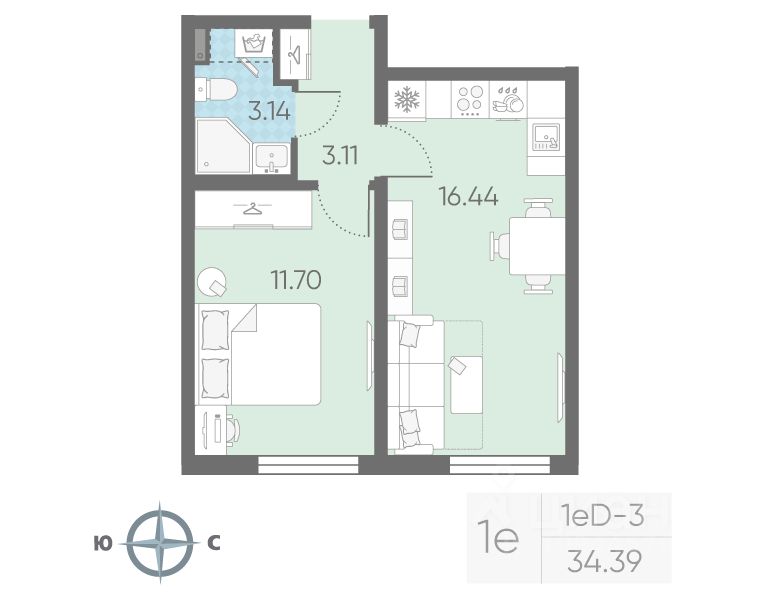 Продается 1-комнатная квартира в ЖК "Морская миля" на 2 этаже. Общая площадь составляет 34.39 кв. м. Квартира с чистовой отделкой. Жилой комплекс "Морская миля" располагается по адресу Санкт-Петербург, Красносельский.