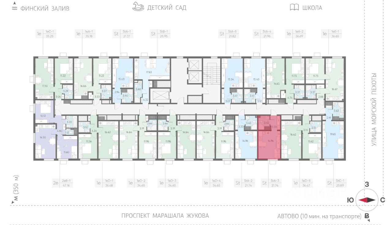 Продается студия в ЖК "Морская миля" на 11 этаже. Общая площадь составляет 21.74 кв. м. Квартира с чистовой отделкой. Жилой комплекс "Морская миля" располагается по адресу Санкт-Петербург, Красносельский.