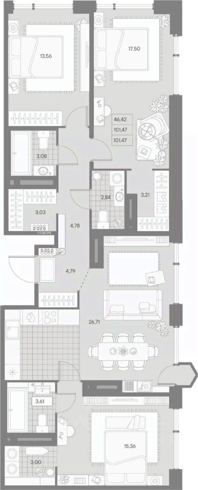Продается 3-комн. квартира, площадью 101.47 м2 в монолитной новостройке в 6 мин. пешком от м. Чкаловская, район города - Петроградский. Возможен вариант покупки с использованием ипотечных средств, есть рассрочка.