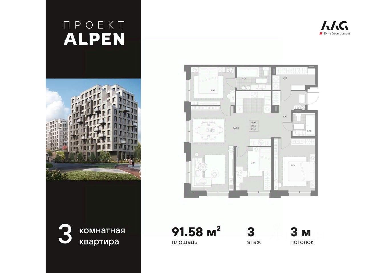В центре Петербурга на берегу реки Охты представлена 3-х комнатная квартира на 3 этаже общей площадью 91.58 кв.м. Дом бизнес-класса в креативном центре Петербурга на берегу реки Охты и 25 минутах пешком до Невского проспекта и 17 минутах пешком до м. Новочеркасская. Неповторимая и цельная атмосфера места. Река, которая обнимает дома, дышащие фасады из натуральных материалов, парк с родниками и травами во дворе и уникальная пластичная архитектура созвучны характеру современного города. ALPEN - дом твоего равновесия. - Приватные корпуса; - Выразительные фасадные решения; - Декоративная подсветка фасада; - Панорамные террасы с видом на реку Охта; - Квартиры с верандами формата high flat; - Витринное остекление. Внутренний двор, набережная и прилегающие территории образуют цельную эко среду, идеальную для комфортной, насыщенной новыми впечатлениями и эмоциями, динамичной жизни. Авторский двор-парк, переходящий в набережную - живописное природное окружение с тропами, променадом и увлекательными маршрутами для путешествий. Холлы и общественные пространства - продолжение парка. Авторское прочтение общественного пространства от московского дизайн бюро STUDIO 211 с первых минут позволяет ощутить ценность равновесия. ALPEN - для тех, кто ценит близость центра, уединенность и природную энергетику. - Без удорожания стоимости квартиры. - Сбербанк, первый взнос от 50,1%. - Рассрочка на 2/6/12 месяцев без удорожания стоимости. - Ипотека 2 рубля в месяц на 2 года