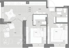 Жилая площадь 33.58 м2, кухня 7.2 м2, квартира без отделки.