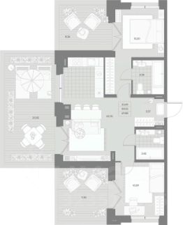 Жилая площадь 48.92 м2, кухня 10.48 м2, квартира без отделки.