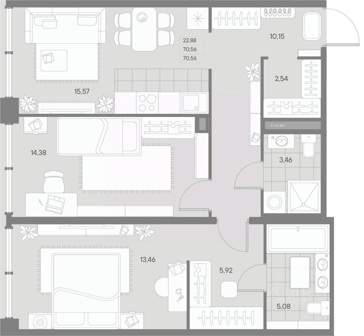 Общая площадь70,59 м²