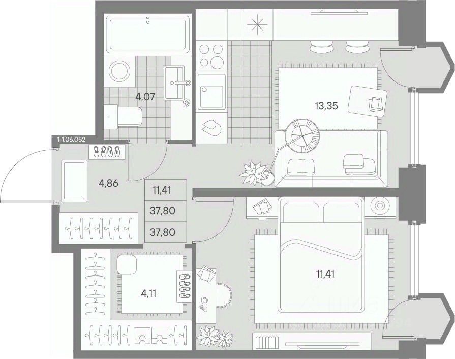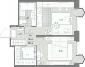 Общая площадь37,8 м²