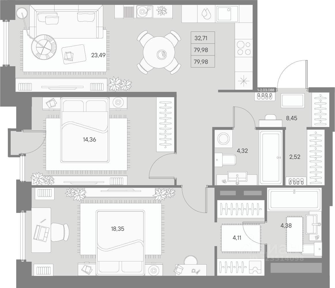 Общая площадь79,98 м²