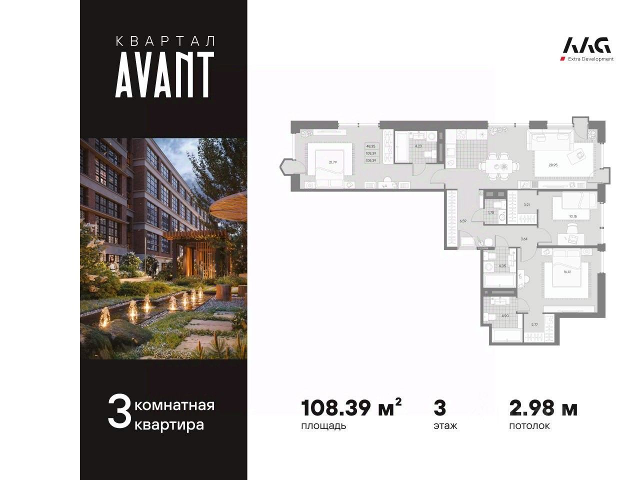 В историческом центре с особой атмосферой Петроградской стороны представлена 3-х комнатная квартира на 3 этаже общей площадью 108.39 кв.м. В корпусе KLASSIK представлены уникальные квартиры для ценителей формата премиум. Пространство вокруг дома вариативно и открывает возможности для отдыха всей семьей на природе. В корпусе расположена зеленая гостиная - полуприватная зона на 2-4 человека с деревянными креслами и диваном, а также детская площадка, интегрированная в сосны. Мультиформатный AVANT соединил вайб Петроградской стороны, индустриальный колорит и уникальную историю локации, органическую архитектуру и множество форматов жилой, коммерческой, сервисной, развлекательной и социальной инфраструктуры, сократив высоту и объем застройки в пользу природных зон, променадов и частного парка. Элитный жилой комплекс располагается в окружении самых престижных заведений и ключевых транспортных артерий Петербурга. AVANT придется по душе тому, кто имеет внутреннюю силу и свободу от стереотипов. Главным общественным пространством и инфраструктурной артерией квартала станет пешеходный променад протяженностью 200 метров для отдыха в привычном для каждого формате. Здесь кафе, рестораны и бутики, фитнес-центр и детские площадки чередуются с уединенными зонами отдыха, окруженными зеленью. Уникальные форматы жилья созданы на основе конструктивных особенностей исторического здания фабрики. Особенности классического лофта задают вариативность форматов: - Индустриальный шик с толщиной стен до 1 метра; - Панорамные окна; - Многоуровневые пространства; - Воздушные антресольные этажи. Такого в Петербурге еще нет. В новом проекте ААG на Пионерской новые смыслы, новые возможности, смелые решения. AVANТ - вaша вcеленная Livе Wоrk Рlay Lеarn для жизни, отдыха и paбoты. - Семейная ипотека 4,3% на весь период кредитования - Траншевая ипотека с платежом 2013 рублей в месяц до ввода в эксплуатацию - Программы рассрочки 0% без удорожания стоимости квартиры - Эксклюзивная опция - отделка WHITE BOX.