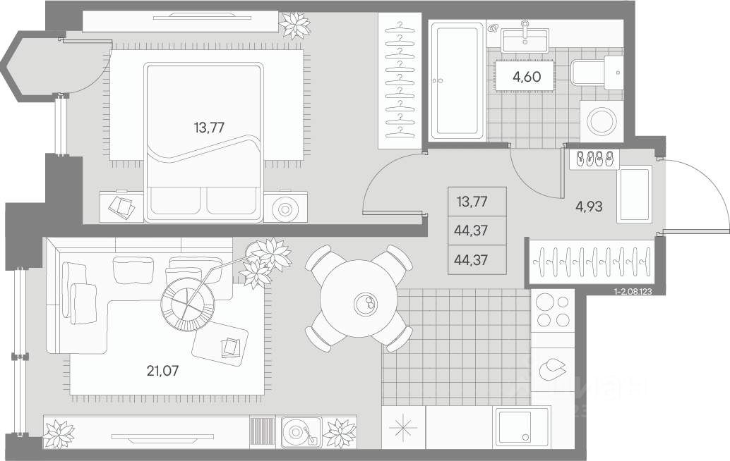 Общая площадь44,37 м²