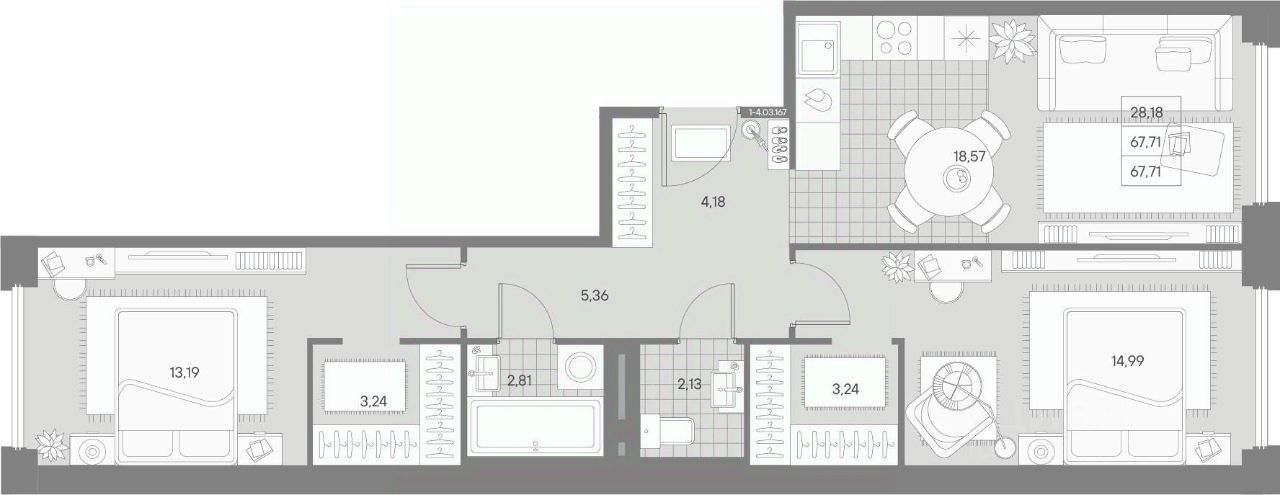 Общая площадь67,71 м²
