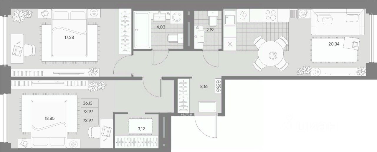 Общая площадь73,97 м²