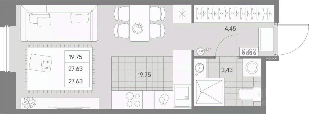 В историческом центре с особой атмосферой Петроградской стороны представлена 1 комнатная квартира на 1 этаже общей площадью 27.63 кв.м.