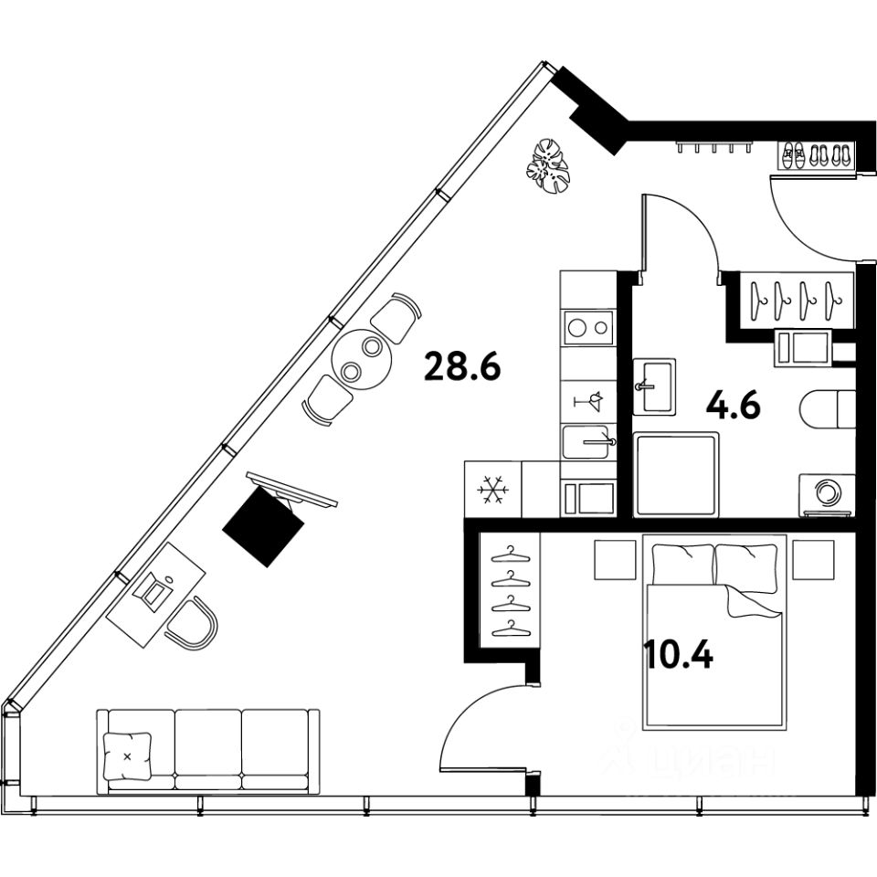 Общая площадь43,6 м²