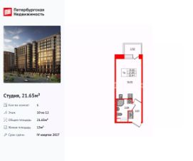 Удобная, классическая, функциональная европланировка, вместительная прихожая 3.01 м². Общая площадь студии - 21.65 м², жилая 15 м², высота потолка 2.75 м.