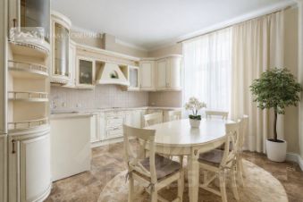 Просторная квартира общей площадью 166,3 кв.м выполнена в классическом стиле.