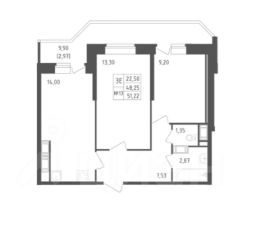 - Две изолированные комнаты - 13,30 и 9,2 с выходом на лоджию 9.9 кв.м