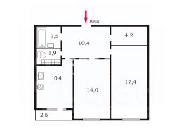 Функциональная планировка: просторные изолированные 17,4 и 14 кв.м комнаты правильной формы (без выступов), кухню 10,5 кв.м дополняет застекленная лоджия площадью 2,5 кв.м., плюс отдельная гардеробная комната 4,2 кв.м. Общая площадь 61,8 кв.м., не считая лоджии.