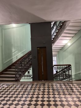 Парадная лестница имеет интересную треугольную форму с тройными окнами, обогащающими лестничные площадки естественным светом.