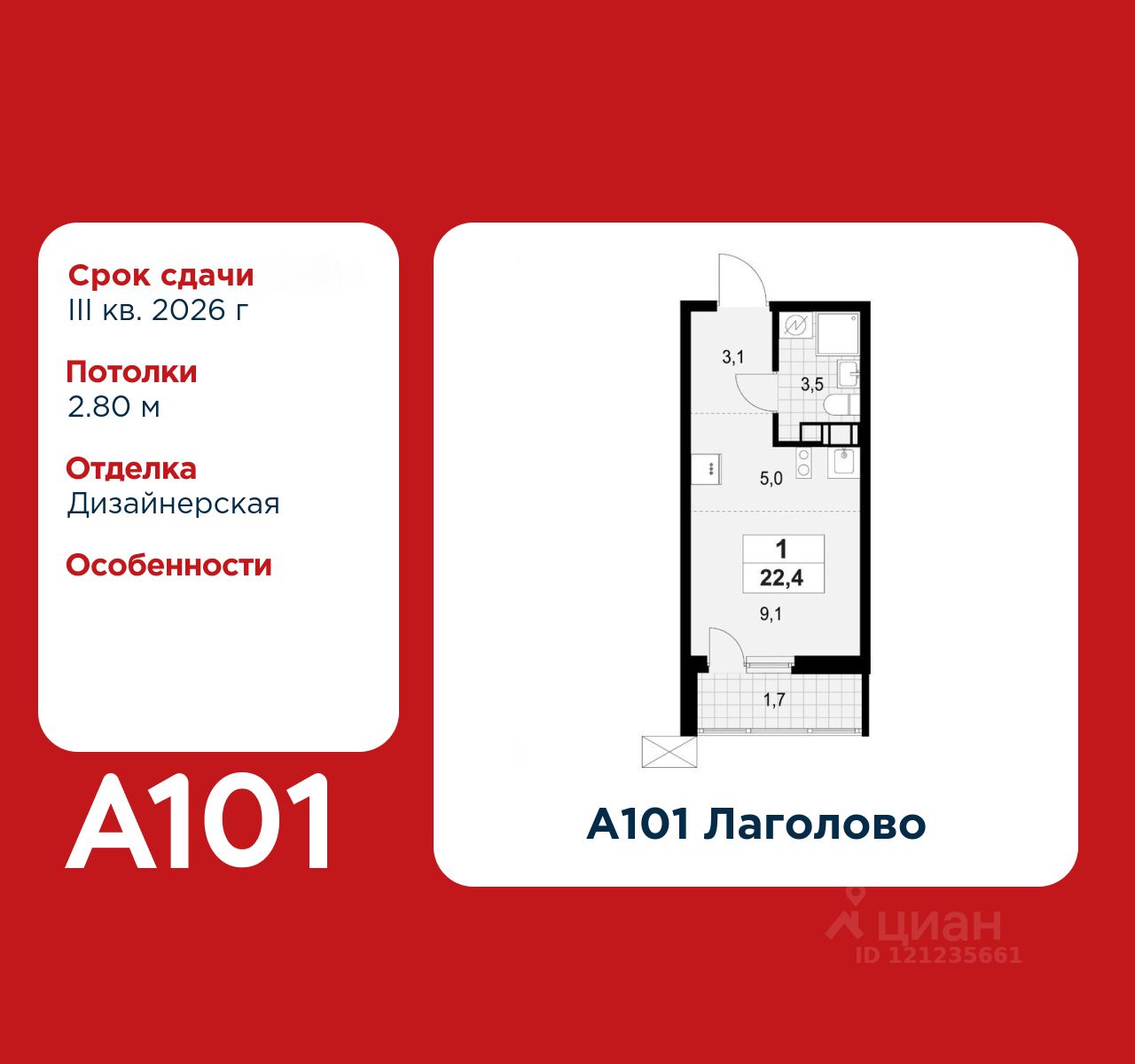 Компания-застройщик — ГК "А101". Стоимость квартиры — 4 645 525 руб.